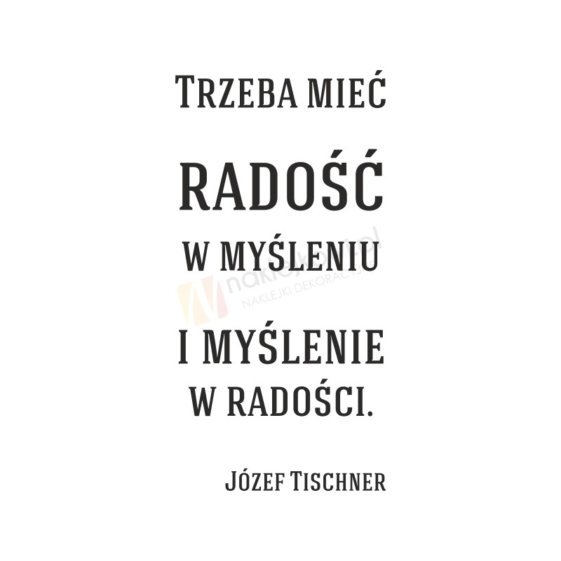 Naklejka motywująco-filozoficzna "Trzeba mieć radość w myśleniu i myślenie w radości. Józef Tischner" to sposób na kreatywną zmianę wystroju wnętrza salonu, pokoju dziennego czy pokoju młodzieżowego.