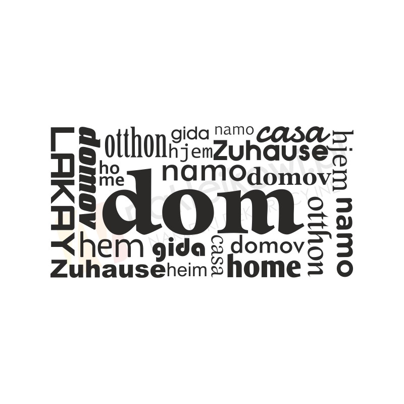Naklejka "Dom" - słowo w wielu językach to sposób na kreatywną zmianę wystroju wnętrza salonu, pokoju dziennego czy przedpokoju.