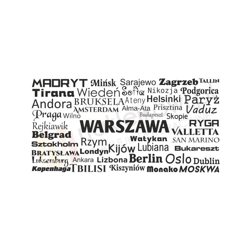 Naklejka "Warszawa" - zestaw stolic to sposób na kreatywną zmianę wystroju wnętrza salonu, pokoju dziennego czy pokoju młodzieżowego.