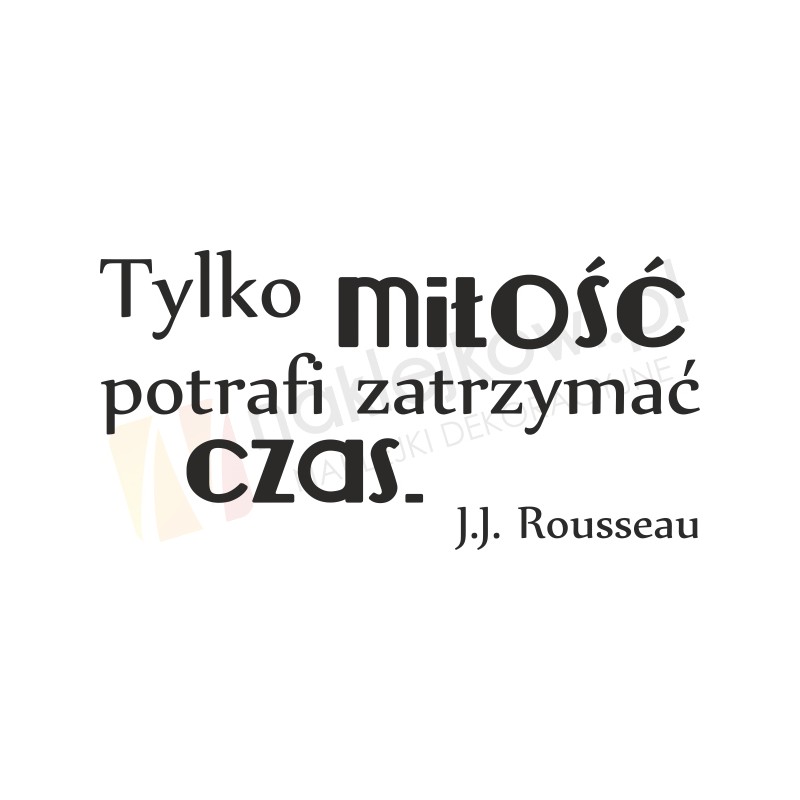 Naklejka dekoracyjna "Tylko miłość potrafi zatrzymać czas. J.J. Rousseau" to sposób na kreatywną zmianę wystroju wnętrza sypialni, przedpokoju, salonu, pokoju dziennego czy pokoju młodzieżowego.