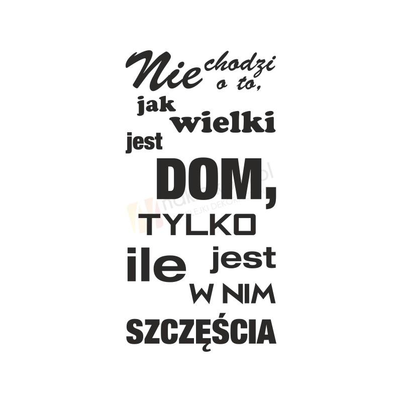Naklejka rodzinna "Nie chodzi o to, jak wielki jest dom, tylko ile jest w nim szczęścia" to sposób na kreatywną zmianę wystroju wnętrza salonu, przedpokoju, sypialni, pokoju dziennego czy pokoju młodzieżowego.