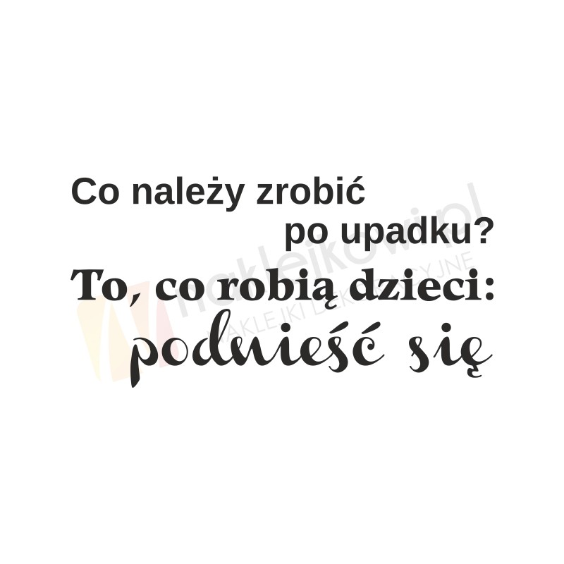 Naklejka "Co należy zrobić po upadku? To, co robią dzieci: podnieść się" to sposób na kreatywną zmianę wystroju wnętrza salonu, pokoju dziennego czy pokoju młodzieżowego.