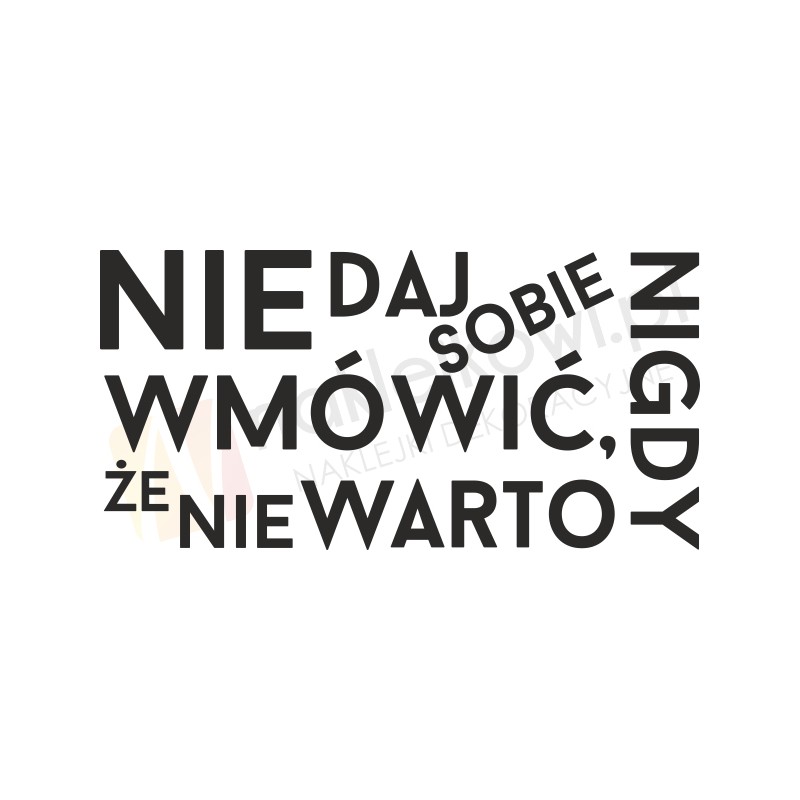 Naklejka motywująca "Nigdy nie daj sobie wmówić, że nie warto" to sposób na kreatywną zmianę wystroju wnętrza salonu, pokoju dziennego czy pokoju młodzieżowego.