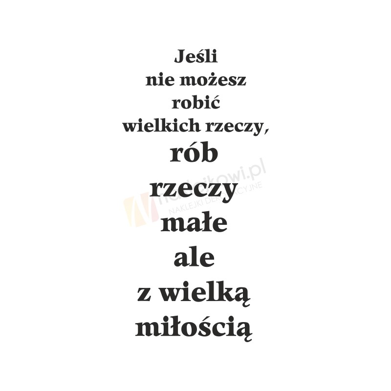 Naklejka "Jeśli nie możesz robić wielkich rzeczy, rób rzeczy małe, ale z wielką miłością" to sposób na kreatywną zmianę wystroju wnętrza salonu, pokoju dziennego czy pokoju młodzieżowego.