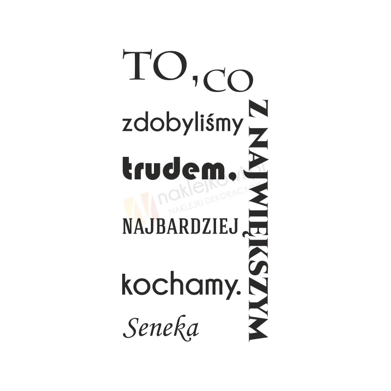 Naklejka dekoracyjna w formie cytatu "To co zdobyliśmy z największym trudem, najbardziej kochamy. Seneka" to sposób na kreatywną zmianę wystroju wnętrza salonu, pokoju dziennego czy pokoju młodzieżowego.