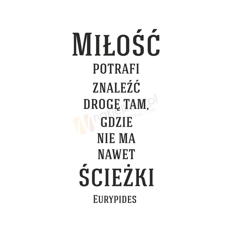 Naklejka "Miłość potrafi znaleźć drogę tam, gdzie nie ma nawet ścieżki. Eurypides" to sposób na kreatywną zmianę wystroju wnętrza salonu, pokoju dziennego czy pokoju młodzieżowego.