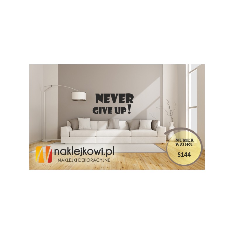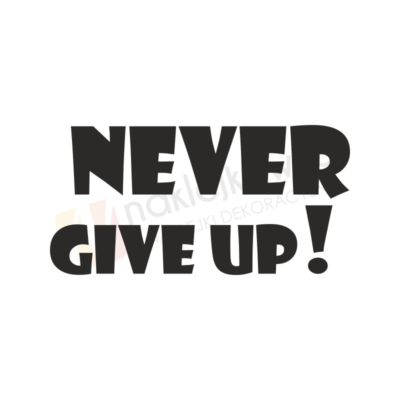 Naklejka "Never give up!" to sposób na kreatywną zmianę wystroju wnętrza salonu, pokoju dziennego czy pokoju młodzieżowego.