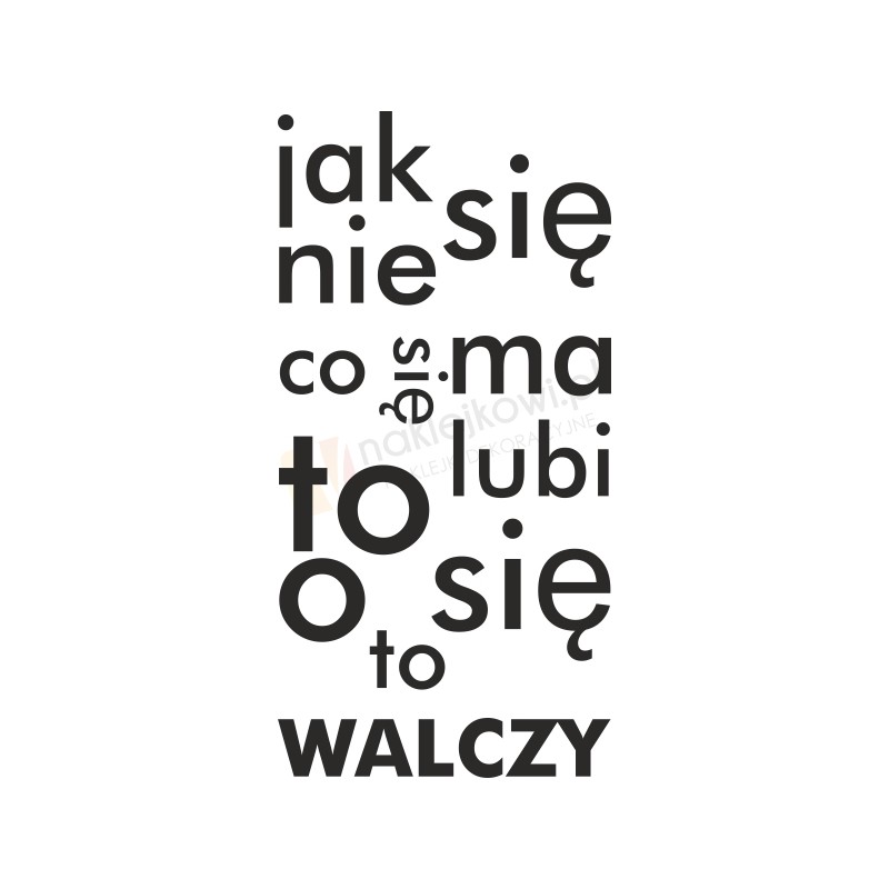 Naklejka motywująca "Jak się nie ma co się lubi to się o to walczy" to sposób na kreatywną zmianę wystroju wnętrza salonu, pokoju dziennego czy pokoju młodzieżowego.