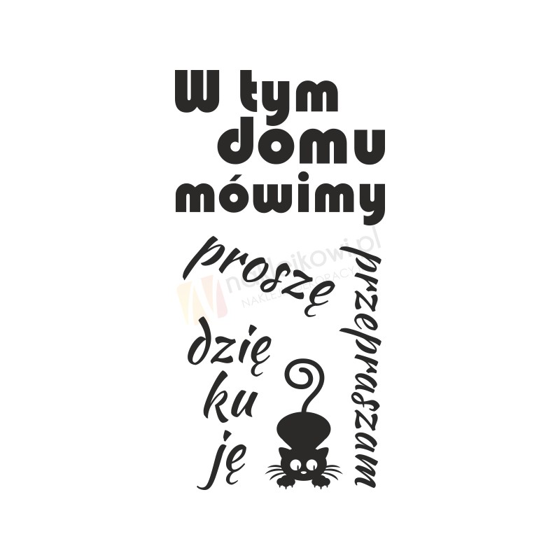 Naklejka dekoracyjna "W tym domu mówimy proszę, dziękuję, przepraszam" to sposób na kreatywną zmianę wystroju wnętrza salonu, przedpokoju, pokoju dziennego czy pokoju młodzieżowego.