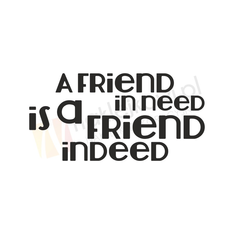 Naklejka "A friend in need is a friend indeed" to sposób na kreatywną zmianę wystroju wnętrza salonu, pokoju dziennego czy pokoju młodzieżowego.