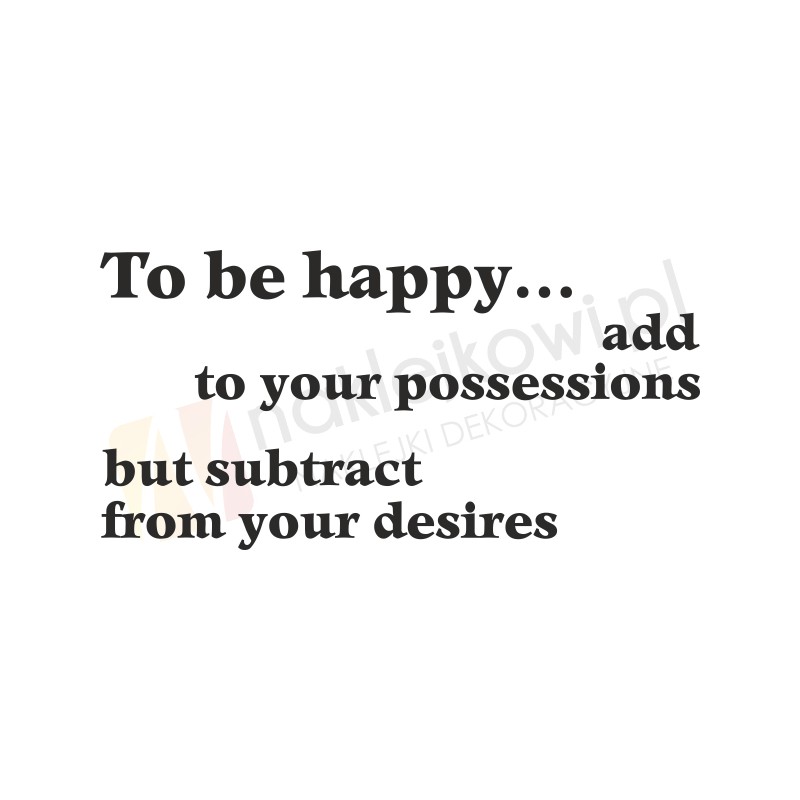 Naklejka motywująca "To be happy... add to your possessions but subtract from your desires" to sposób na kreatywną zmianę wystroju wnętrza salonu, pokoju dziennego czy pokoju młodzieżowego.