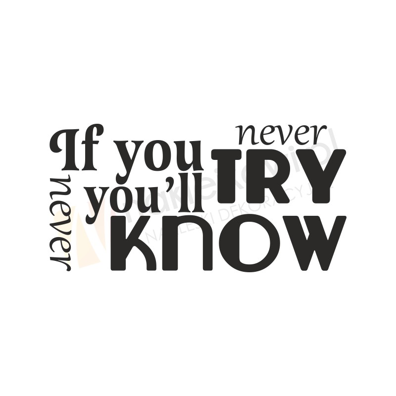 Naklejka "If you never try you'll never know" to sposób na kreatywną zmianę wystroju wnętrza salonu, pokoju dziennego czy pokoju młodzieżowego.