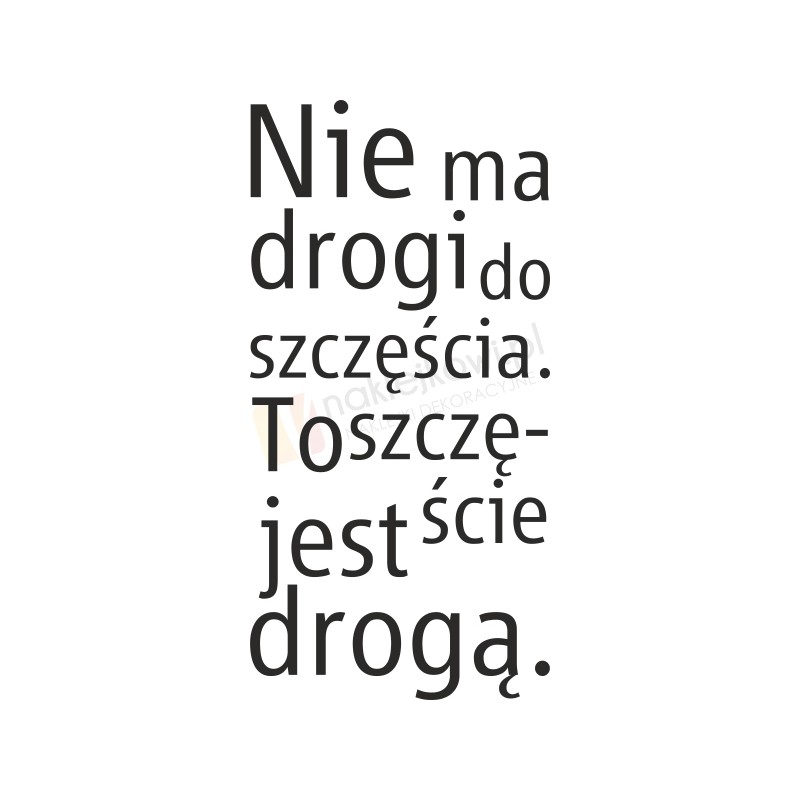 Naklejka motywująca "Nie ma drogi do szczęścia, To szczęście jest drogą." to sposób na kreatywną zmianę wystroju wnętrza sypialni, salonu, pokoju dziennego czy pokoju młodzieżowego.