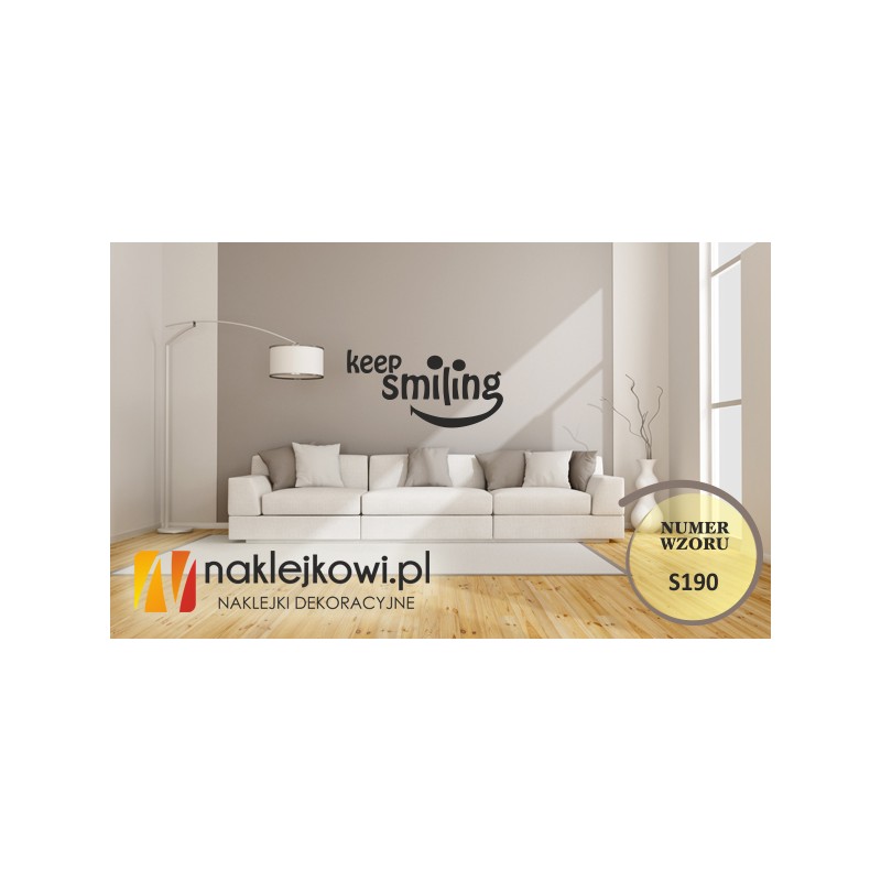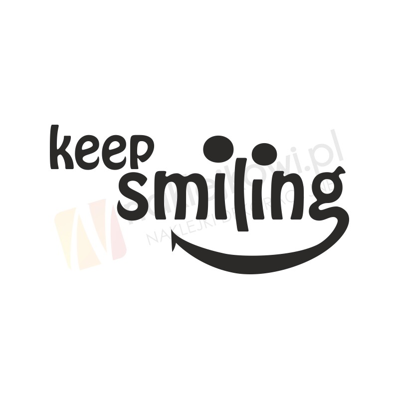 Naklejka humorystyczna, motywująca "Keep smiling" to sposób na kreatywną zmianę wystroju wnętrza salonu, pokoju dziennego czy pokoju młodzieżowego.