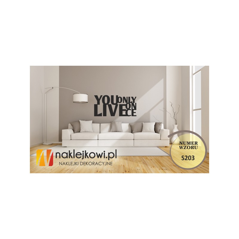 Naklejka "You only live once" to sposób na kreatywną zmianę wystroju wnętrza przedpokoju, sypialni, salonu, pokoju dziennego czy pokoju młodzieżowego.