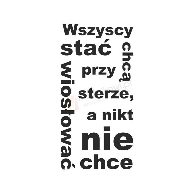 Naklejka dekoracyjna motywująca "Wszyscy chcą stać przy sterze, a nikt nie chce wiosłować" to sposób na kreatywną zmianę wystroju wnętrza salonu, pokoju dziennego czy pokoju młodzieżowego.