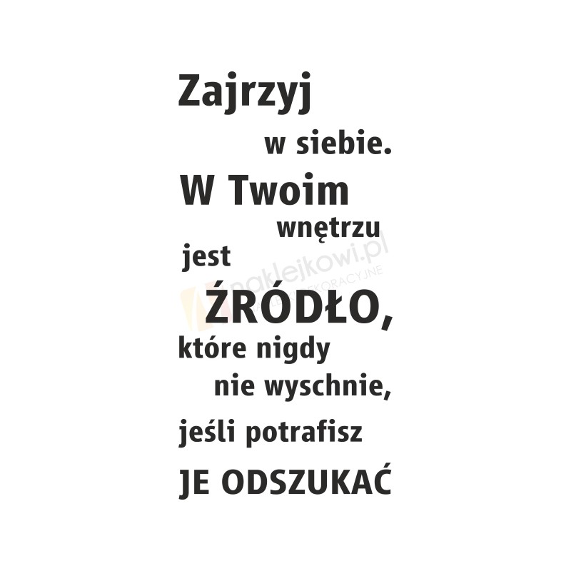 Naklejka - motywator "Zajrzyj w siebie. W Twoim wnętrzu jest źródło, które nigdy nie wyschnie, jeśli potrafisz je odszukać" to sposób na kreatywną zmianę wystroju wnętrza salonu, pokoju dziennego czy pokoju młodzieżowego.