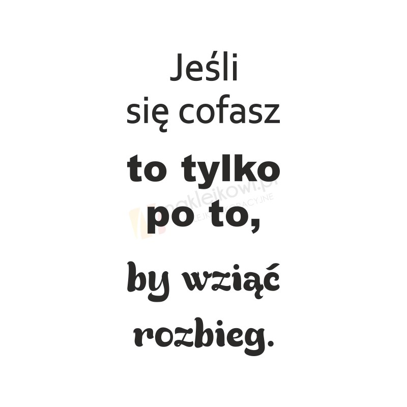 Naklejka o motywującym charakterze "Jeśli się cofasz to tylko po to by wziąć rozbieg."