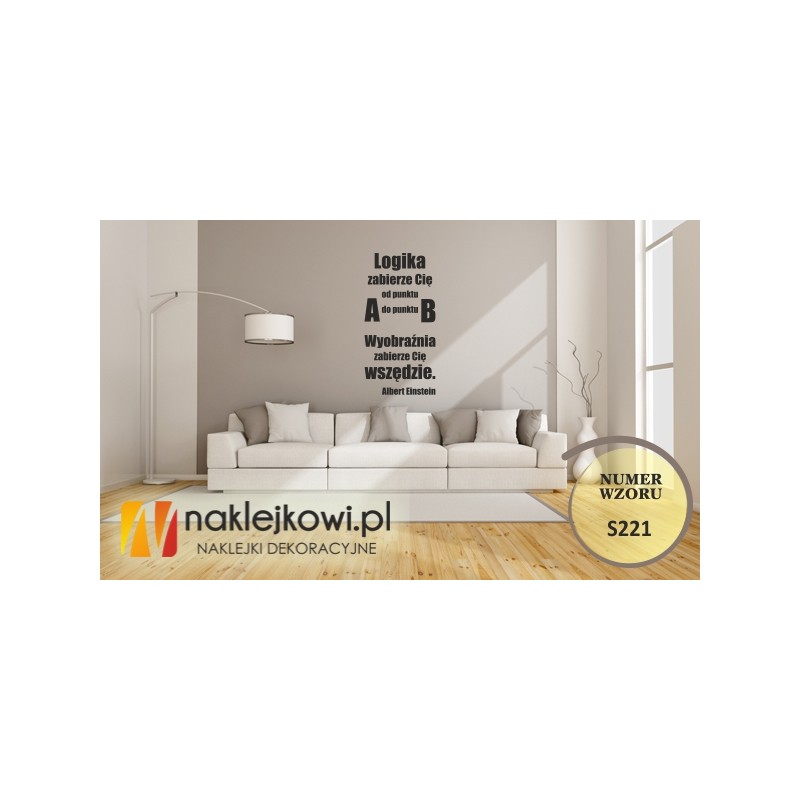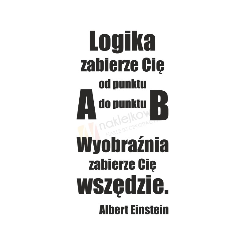 Naklejka ozdobna "Logika zabierze Cię od punktu A do punktu B. Wyobraźnia zabierze Cię wszędzie. Albert Einstein" to sposób na kreatywną zmianę wystroju wnętrza salonu, pokoju dziennego czy pokoju młodzieżowego.