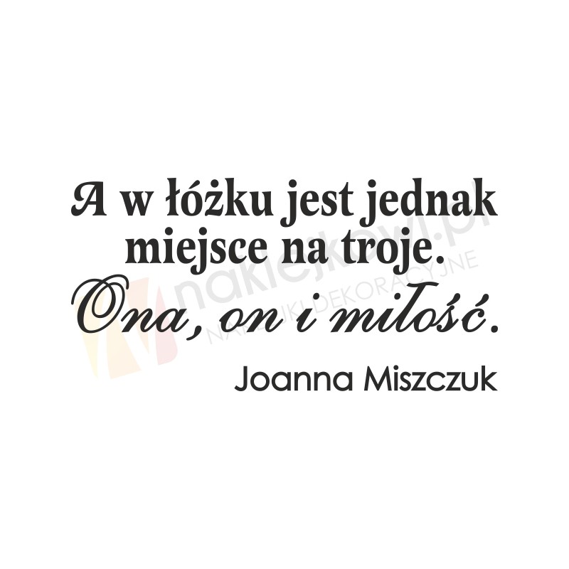 Naklejka " A w łóżku jest jednak miejsce na troje. Ona, on i miłość. - Joanna Miszczuk"