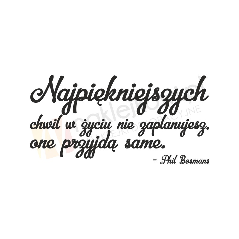 Naklejka na ścianę w formie cytatu "Najpiękniejszych chwil w życiu nie zaplanujesz, one przyjdą same. - Phil Bosmans"
