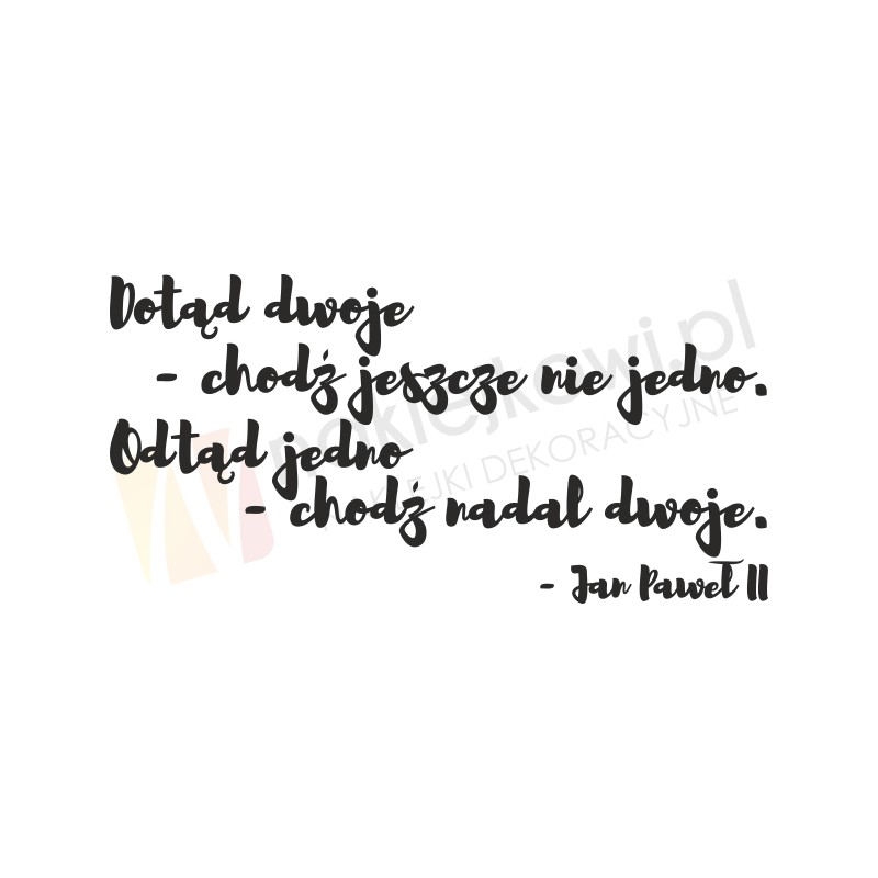 Naklejka na ścianę w formie cytatu "Dotąd dwoje chodź jeszcze nie jedno. Odtąd jedno - chodź nadal dwoje. - JP II"