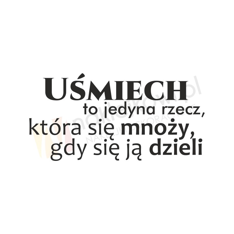 Naklejka dekoracyjna "Uśmiech to jedyna rzecz, która się mnoży, gdy się ją dzieli" to sposób na kreatywną zmianę wystroju wnętrza salonu, pokoju dziennego czy pokoju młodzieżowego.