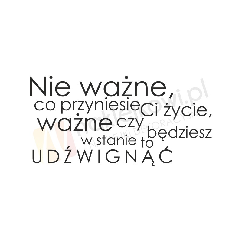 Naklejka "Nie ważne, co przyniesie Ci życie, ważne czy będziesz w stanie to udźwignąć" to sposób na kreatywną zmianę wystroju wnętrza salonu, pokoju dziennego czy pokoju młodzieżowego.