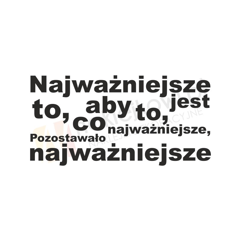 Naklejka "Najważniejsze jest to, aby to co najważniejsze, pozostawało najważniejsze" to sposób na kreatywną zmianę wystroju wnętrza salonu, pokoju dziennego czy pokoju młodzieżowego.