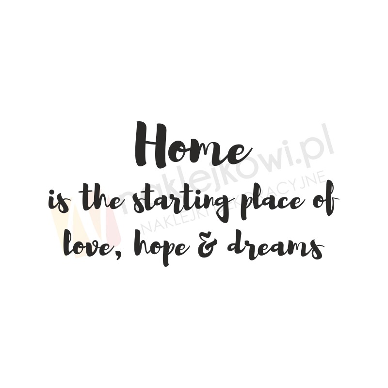 Naklejka na ścianę w formie cytatu "Home is the starting place of love, hope & dreams"