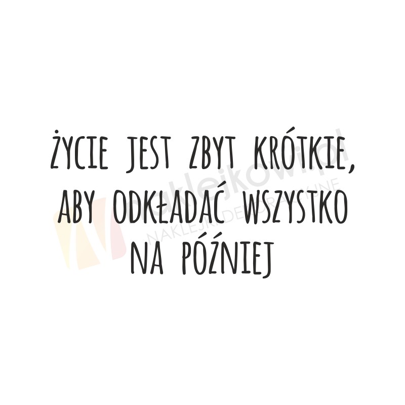 Naklejka na ścianę "Życie jest za krótkie żeby odkładać wszystko na później"
