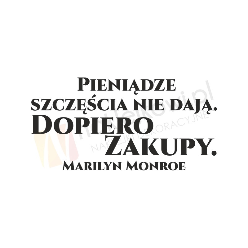 Naklejka dekoracyjna ''Pieniądze szczęścia nie dają. Dopiero zakupy. Marilyn Monroe'' to sposób na kreatywną zmianę wystroju wnętrza salonu, pokoju dziennego czy pokoju młodzieżowego.