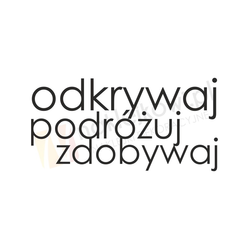 Naklejka motywująca "Odkrywaj, podróżuj, zdobywaj" to sposób na kreatywną zmianę wystroju wnętrza salonu, pokoju dziennego czy pokoju młodzieżowego.