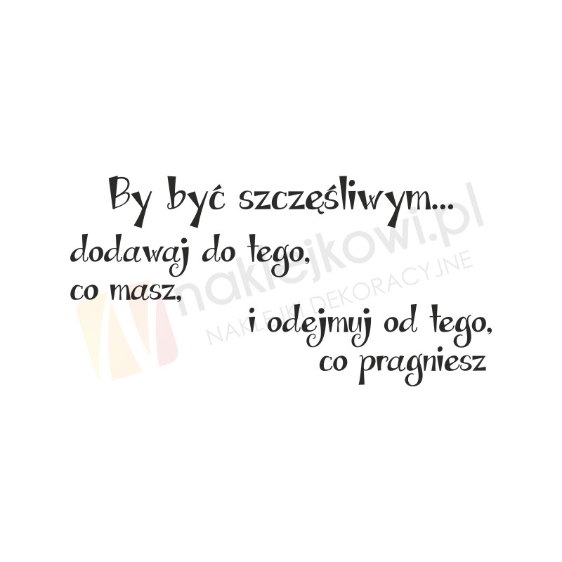 Naklejka dekoracyjna "By być szczęśliwym... dodawaj do tego co masz i odejmuj od tego, co pragniesz" to sposób na kreatywną zmianę wystroju wnętrza salonu, pokoju dziennego czy pokoju młodzieżowego.