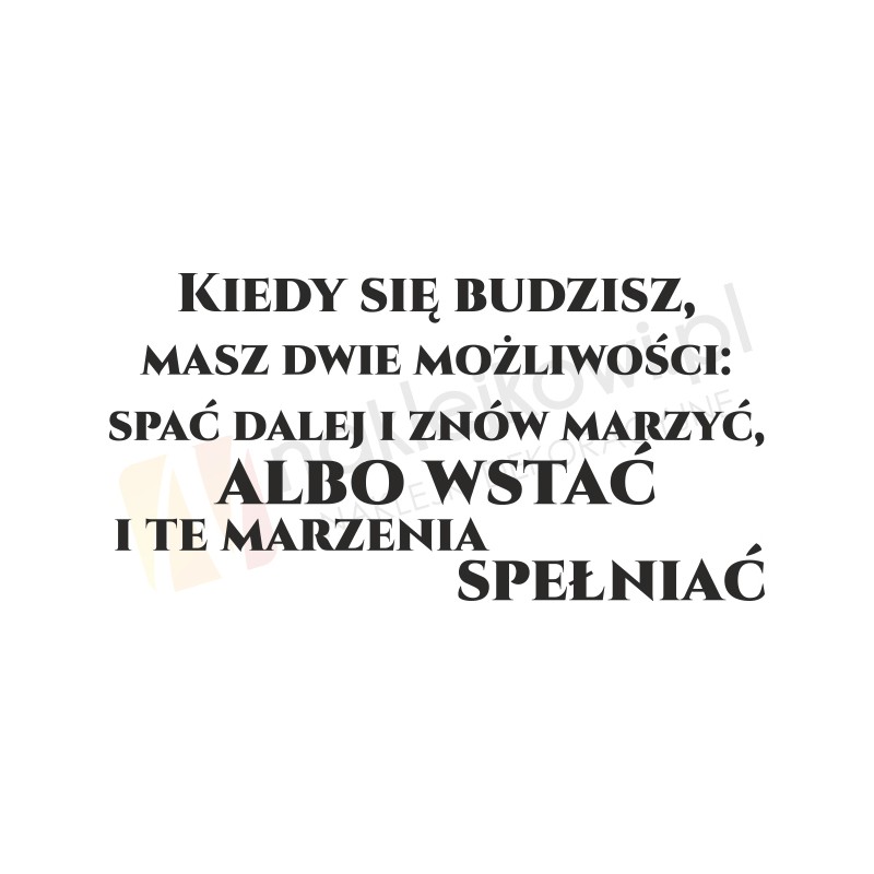 Naklejka naścienna w formie motywatora "Kiedy się budzisz masz dwie możliwości: spać dalej i znów marzyć, albo wstać i te marzenia spełniać" to sposób na