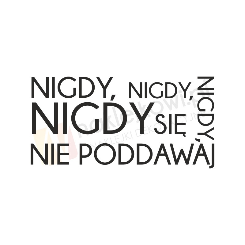 Naklejka motywująca "Nigdy, nigdy, nigdy, nigdy się nie poddawaj" to sposób na kreatywną zmianę wystroju wnętrza salonu, pokoju dziennego czy pokoju młodzieżowego.