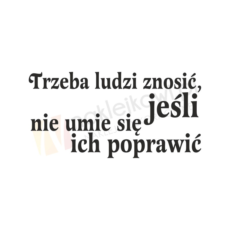 Naklejka dekoracyjna "Trzeba ludzi znosić, jeśli nie umie się ich poprawić" to sposób na kreatywną zmianę wystroju wnętrza salonu, pokoju dziennego czy pokoju młodzieżowego.