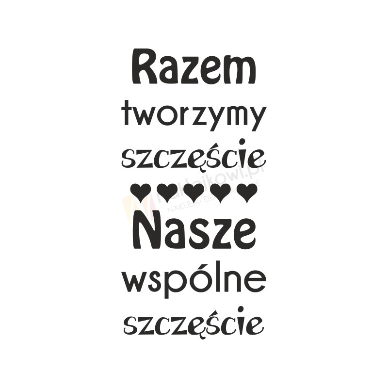 Naklejka dekoracyjna "Razem tworzymy szczęście. Nasze wspólne szczęście" to sposób na kreatywną zmianę wystroju wnętrza salonu, pokoju dziennego czy sypialni.