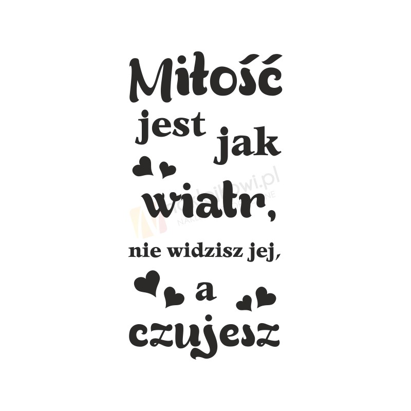 Naklejka "Miłość jest jak wiatr, nie widzisz jej, a czujesz" to sposób na kreatywną zmianę wystroju wnętrza sypialni, salonu, pokoju dziennego czy pokoju młodzieżowego.