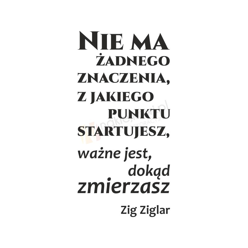 Naklejka motywująca "Nie ma żadnego znaczenia, z jakiego punktu startujesz, ważne jest, dokąd zmierzasz. Zig Ziglar" to sposób na kreatywną zmianę wystroju wnętrza salonu, pokoju dziennego czy pokoju młodzieżowego.