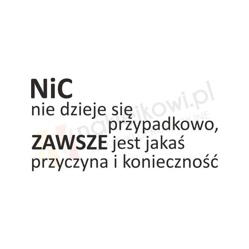 Naklejka dekoracyjna "Nic nie dzieje się przypadkowo, zawsze jest jakaś przyczyna i konieczność" to sposób na kreatywną zmianę wystroju wnętrza salonu, pokoju dziennego czy pokoju młodzieżowego.